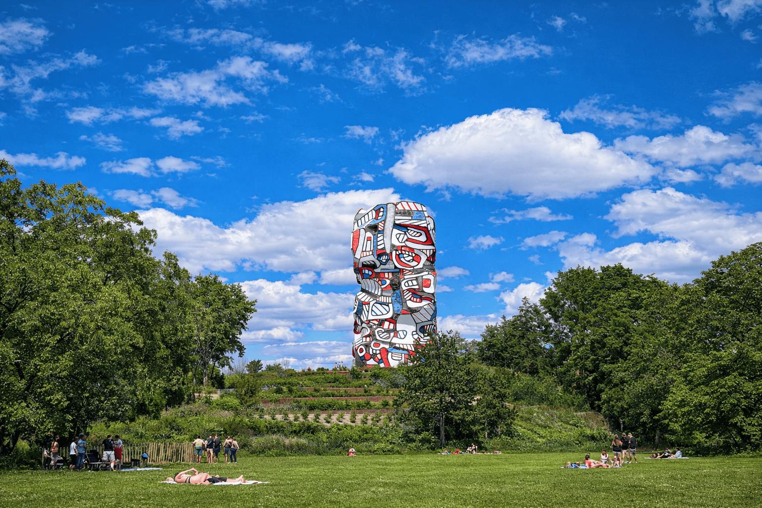 - Pause : Bancs et zones ombragées répartis dans le parc