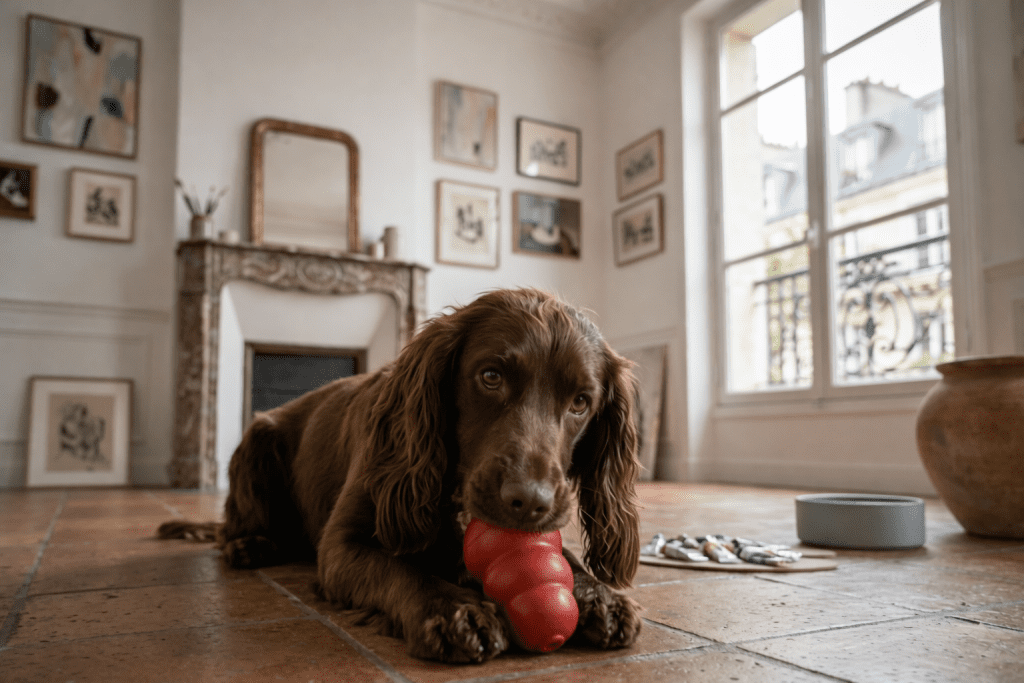 Pour que laisser son Cocker seul se passe bien, l’occupation mentale est une priorité. Un Kong farci de pâte à mâcher, un tapis de fouille ou un jouet distributeur de croquettes peut absorber l’énergie de votre chien et transformer la solitude en moment de concentration plutôt qu’en source d’angoisse.